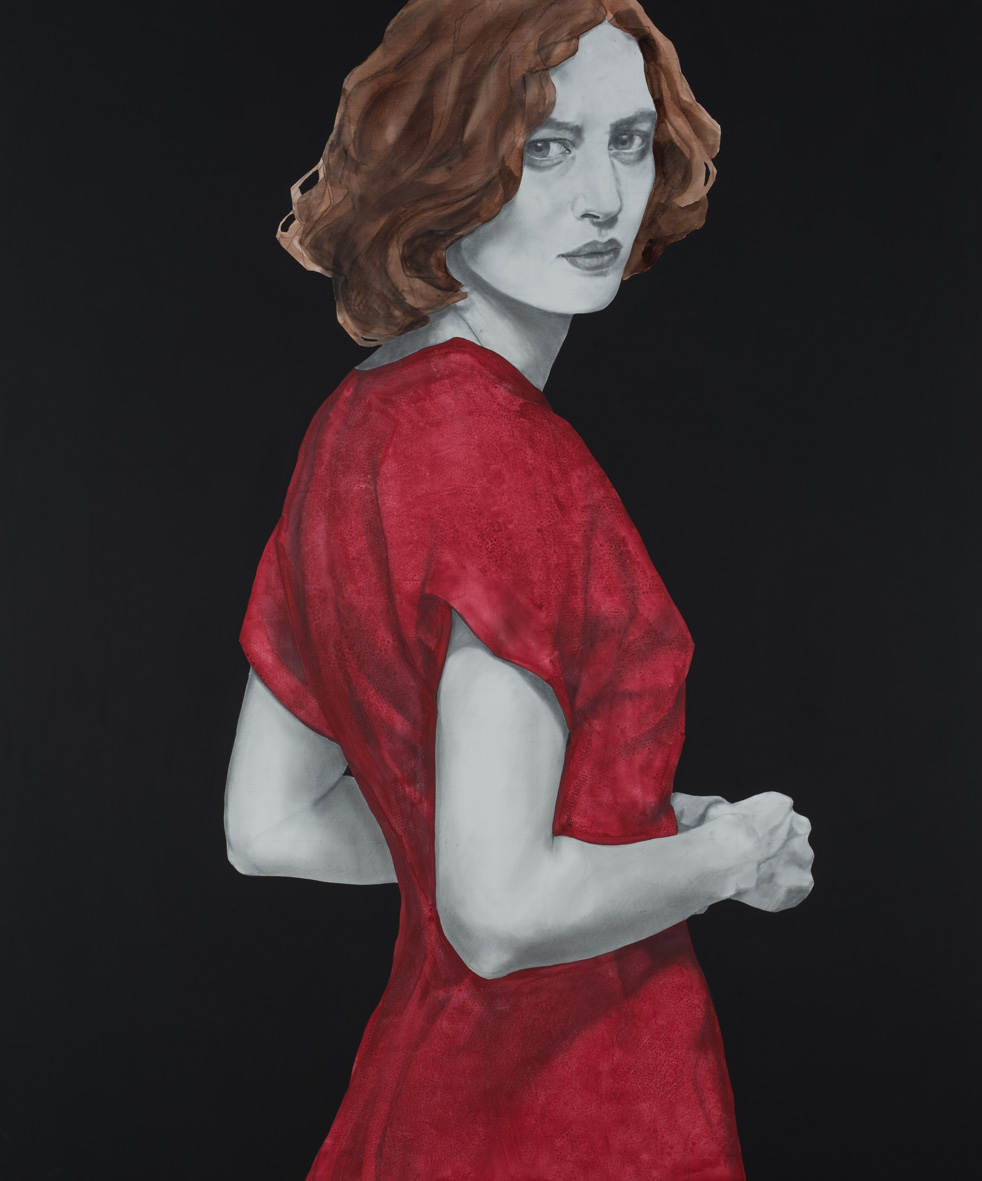 il rosso è il colore forse più ricorrente nelle opere di Antonella Masetti Lucarella, perturbante e aggressivo, sacro e vitale come le sue creature, seguito dal nero, dunque il fuoco, il sangue, il furore, l’amore, per passare a suggestioni di tenebra, di mistero, di buio silenzio nello svolgersi di una copiosa teoria di personaggi al centro della quale domina, raffinata e austera, la figura femminile, talvolta appagandosi appena di preziosi frammenti: mani parlanti, una spalla ignuda, un mezzo violino, la visione di un pube, uno chignon ben acconciato, capaci, nel loro apparente distacco carico di pathos, di sommuovere le nostre più intime, inconfessabili passioni e i più impertinenti interrogativi, risvegliando in noi quel fascino imprevedibile che ha la vita, che credevamo definitivamente perduto. GS
