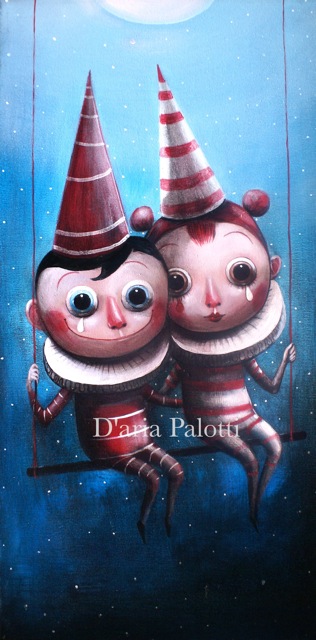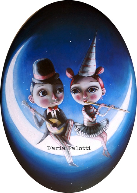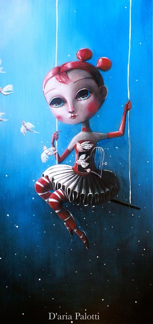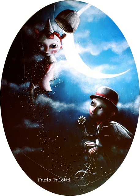Conosciuta a Macerata anni fa, Palotti è un'artista a tutto tondo. Le sue opere rispecchiano l'anima di Daria, prestata al mondo dell'illustrazione intelligentemente e con innato tocco sottrae dal mondo dell'Arte emozioni e originali stili, fondendoli sapientemente sulle tele. Della pittura di Daria rimango rapito e incuriosito, ogni suo lavoro mi catapulta nel suo mondo fantastico. Quell'equilibrio giocoso che i suoi soggetti hanno tra il mondo dell'infanzia e quello degli adulti, fanno di Daria un'artista originale. Mai più vera, nella sua opera, quella ricerca di picassiana memoria, in cui l'arte perfetta nasce dalla primitiva conoscenza dote di rari soggetti adulti. La mostra, prima personale, di Daria a Milano, darà la possibilità di confrontarsi con la sua produzione recente oltre che pittorica anche scultorea... Giorgio Lodetti