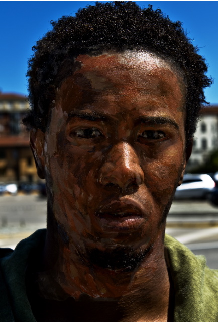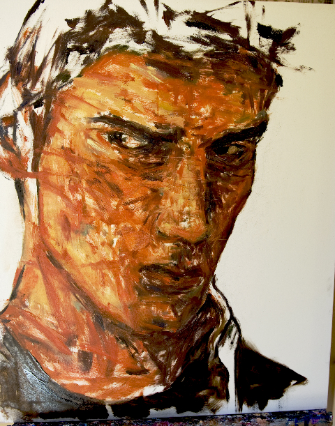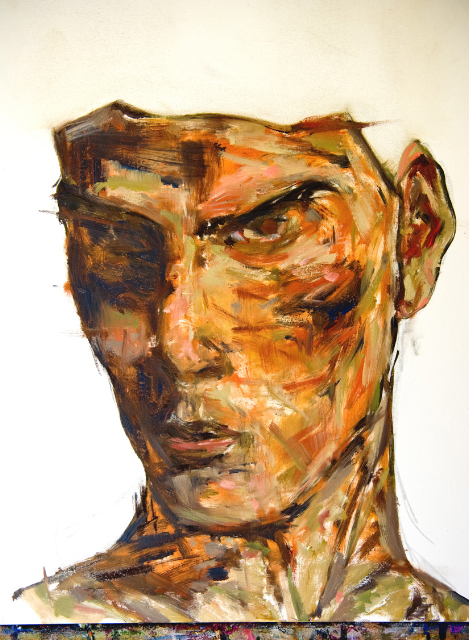Egli dipinge volti, emblemi riconoscibili della storia umana, tema prediletto.